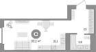 Жилая 35.34 м2