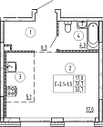 Жилая 26.7 м2