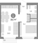 Жилая 23.82 м2