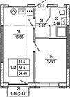 Жилая 10.37 м2