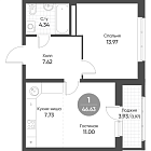 Жилая 43.72 м2
