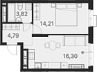 Жилая 21.16 м2