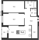 74.8 м2 19 этаж