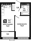 34.77 м2 14 этаж