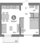 35.81 м2 6 этаж