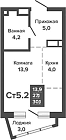 34.7 м2 13 этаж