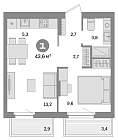 40.35 м2 5 этаж