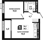 34.34 м2 15 этаж
