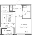 33.8 м2 10 этаж