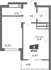 55.63 м2 13 этаж