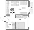 34.34 м2 13 этаж