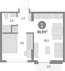 34.63 м2 17 этаж