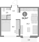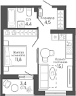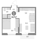 34.4 м2 14 этаж
