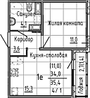 34.52 м2 12 этаж
