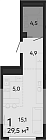 22.9 м2 4 этаж