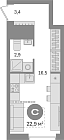 22.3 м2 21 этаж