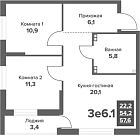 54.68 м2 11 этаж