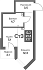 Жилая 22.1 м2