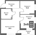 Жилая 22.2 м2