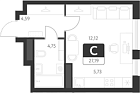 21.39 м2 20 этаж