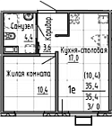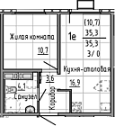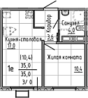 35.4 м2 10 этаж