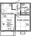 34.7 м2 17 этаж