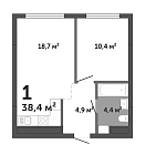 38.4 м2 15 этаж