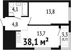 37.9 м2 13 этаж