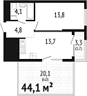 53.8 м2 13 этаж