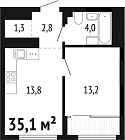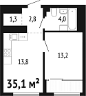 35.1 м2 13 этаж