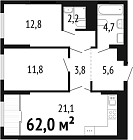 62 м2 11 этаж