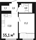 35.4 м2 13 этаж