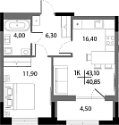 40.9 м2 6 этаж