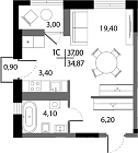 37.3 м2 10 этаж
