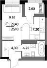 24.8 м2 17 этаж