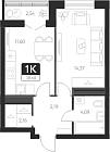 50.79 м2 11 этаж