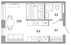 25.4 м2 13 этаж