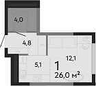 26.9 м2 12 этаж