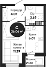 25.93 м2 6 этаж
