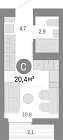 29.03 м2 7 этаж