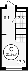 20.8 м2 13 этаж