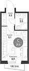 17.85 м2 23 этаж