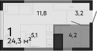 24.3 м2 13 этаж