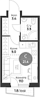 21.91 м2 3 этаж