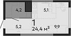 24.4 м2 13 этаж