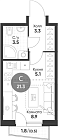 20.9 м2 8 этаж