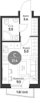 23.6 м2 18 этаж