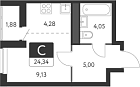 23.74 м2 9 этаж